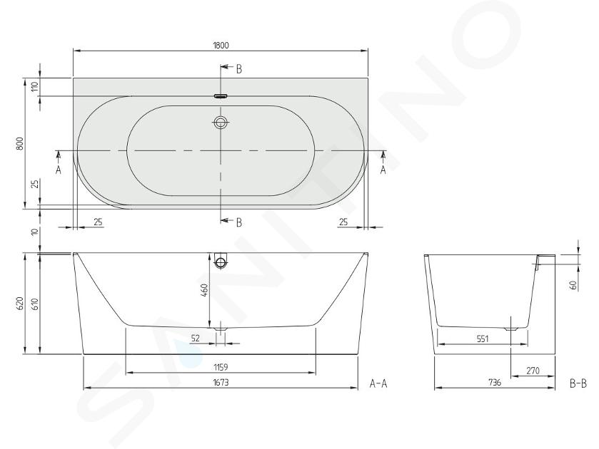Odpad vany je umístěn uprostřed, přičemž odpadová a přepadová souprava je součástí balení. Vanu můžete umístit přímo na podlahu. Použitelný obsah vody je 205 litrů. Dopřejte si koupel, kterou si zasloužíte.