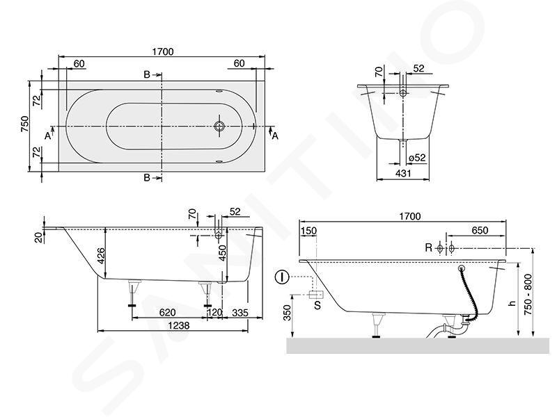 Díky bílému provedení povrchů vana bez problémů zapadne do jakéhokoli koupelnového stylu, přičemž v koupelně navozují pocit luxusní čistoty. Odpad je umístěn v oblasti nohou, proto při koupeli nepřekáží. Součástí balení jsou také podstavné samolepící nožičky, kterými snadno vyrovnáte případné nerovnosti podlahy. K vaně je třeba doobjednat odpadovou a přepadovou soupravu, která není součástí dodávky.