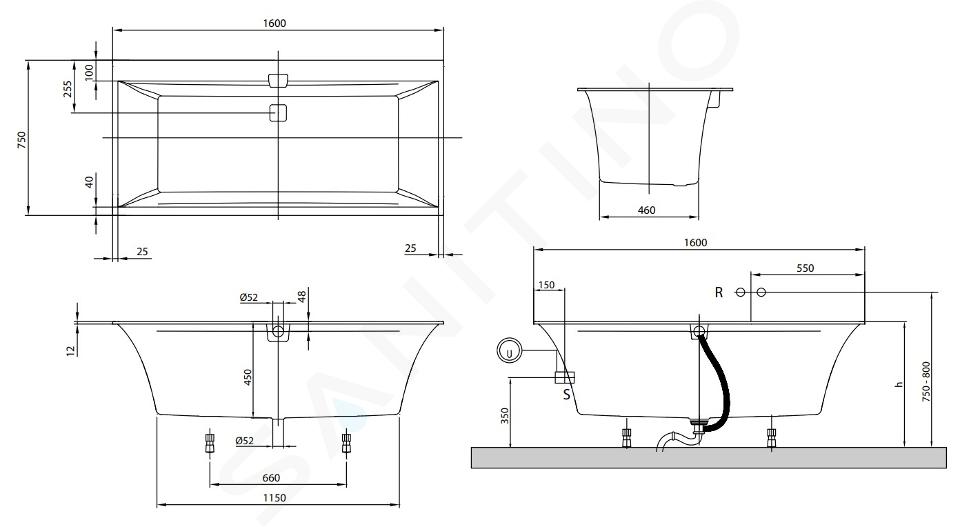 Pro případ, že by tuto vestavnou vanu využili dva lidé současně, obsahuje 2 skloněné zádové části pro pohodlné opření zad. Přepadovou a odtokovou soupravu v chromovém provedení a nožičky řada Squaro Edge 12 od značky Villeroy & Boch do balení dodává. Odpad a přepad mají své místo uprostřed vany.